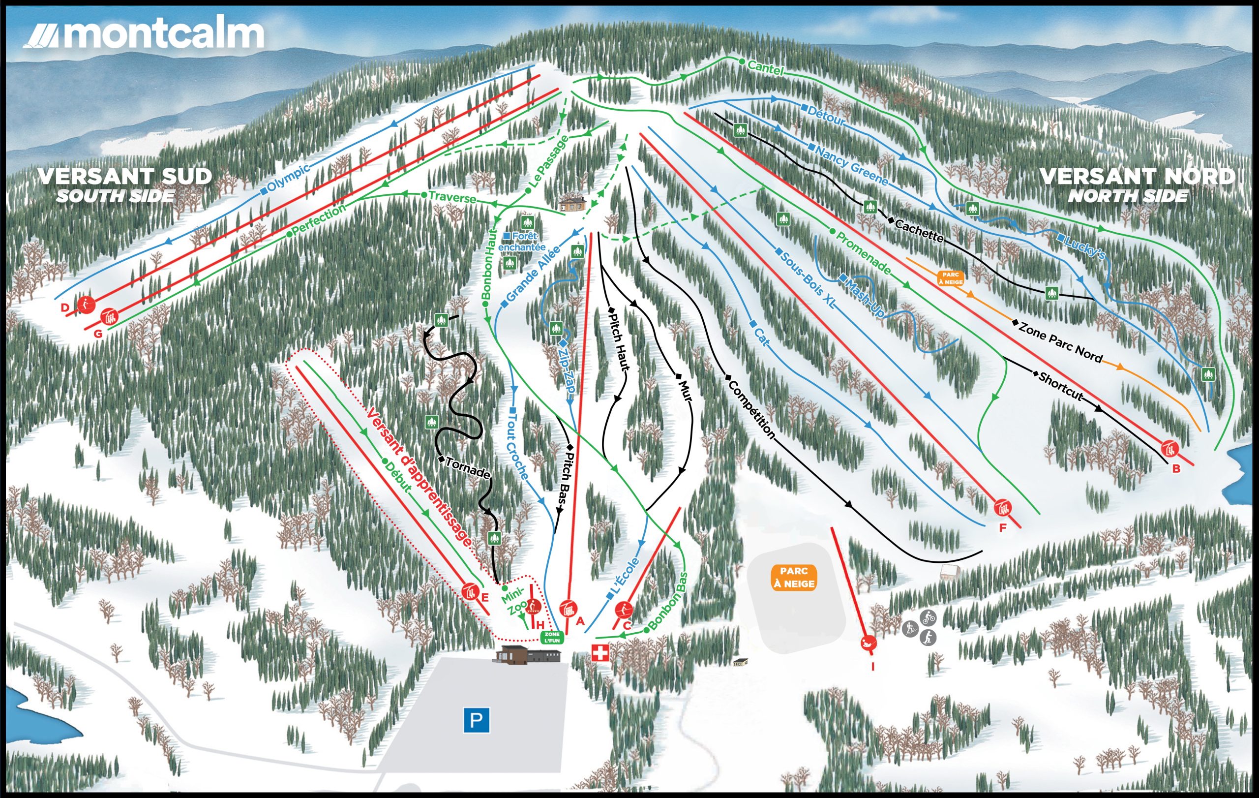 Partagés selon leur niveau de difficulté, la montagne offre trois parcs à neige dédiés au plaisir et ce, en toute sécurité.