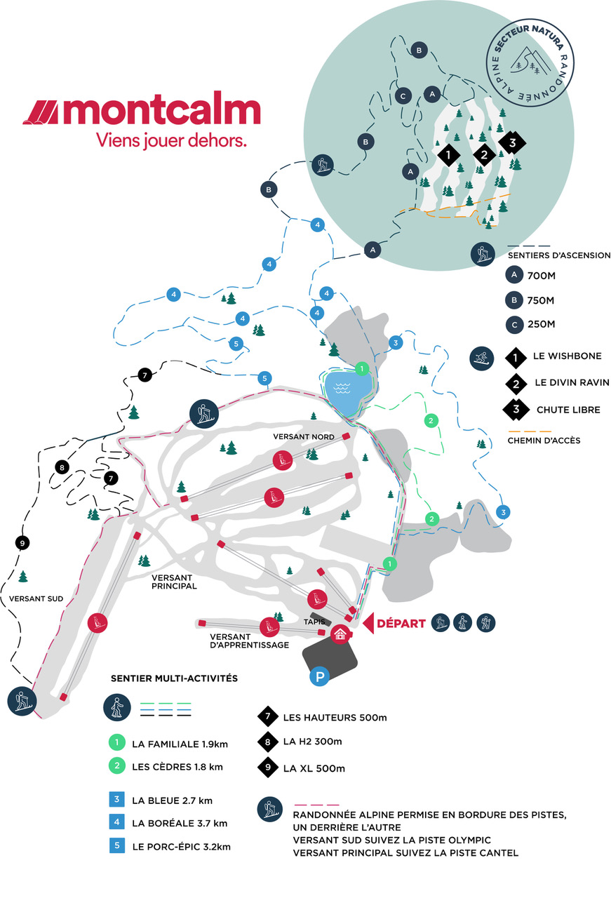 À votre disposition, de nombreux sentiers balisés pour pratiquer la randonnée alpine, une activité accessible pour tous. Rejoignez le sommet de la montagne, peaux de phoque à vos pieds, tout en admirant différents types de terrains hors-pistes et boisés durant la montée. Découvrez le nouveau secteur Natura disponible uniquement pour la randonnée alpine!